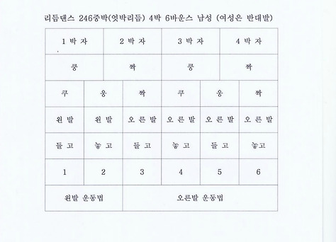 도표-1번은 리듬짝에서 사용하며 도표-2번은 246짝춤에서 사용함으로서...